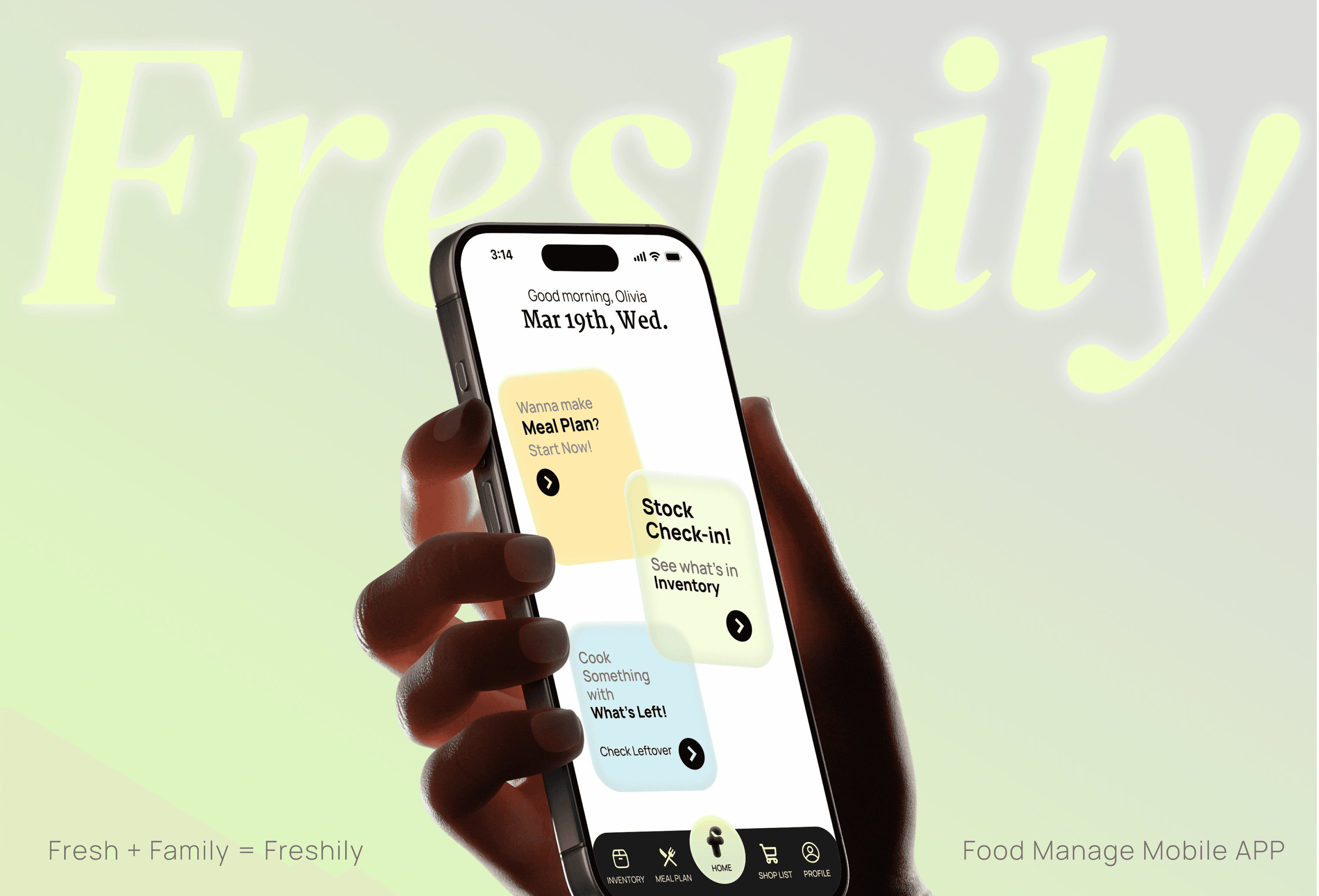 Freshily is a family centered food management system that supports households in managing inventory, planning meals, and coordinating shopping together.